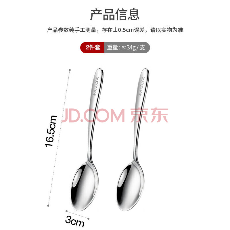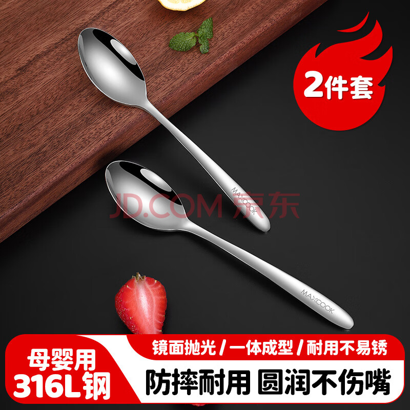 商品相册:美厨(maxcook)316L不锈钢汤勺汤匙 加大加厚勺子儿童餐具饭勺调羹2件套MCCU4643第1张/共8