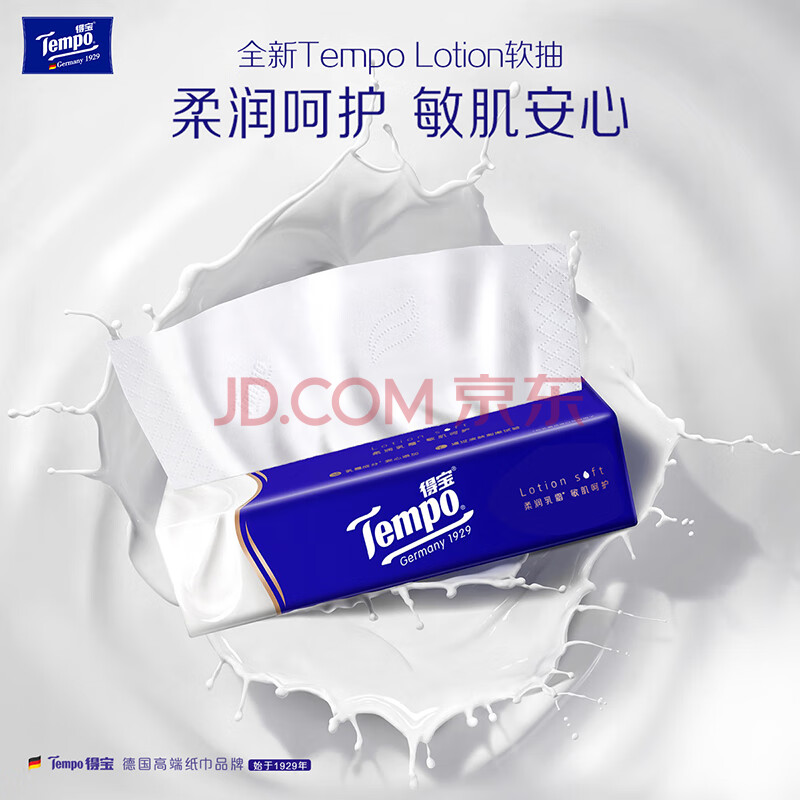 商品相册:得宝(TEMPO)一博同款 乳霜纸 婴儿云柔巾 Lotion4层70抽*4包 保湿纸巾 抽纸第