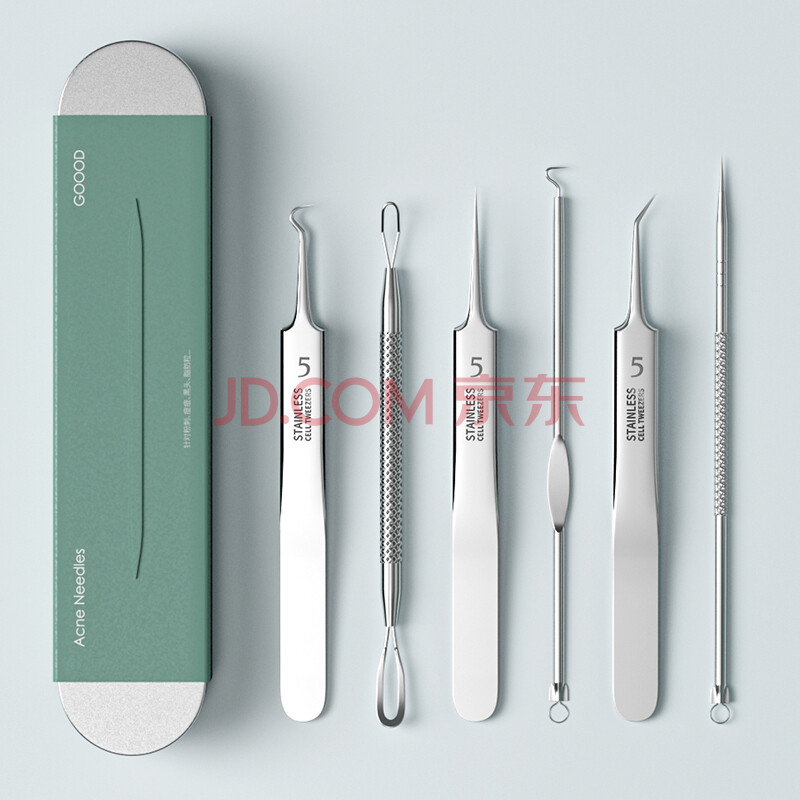 商品相册:古迪GOOOD超尖粉刺针细胞夹6件套装挤痘痘闭口去黑头刮美容院专用工具镊子第
