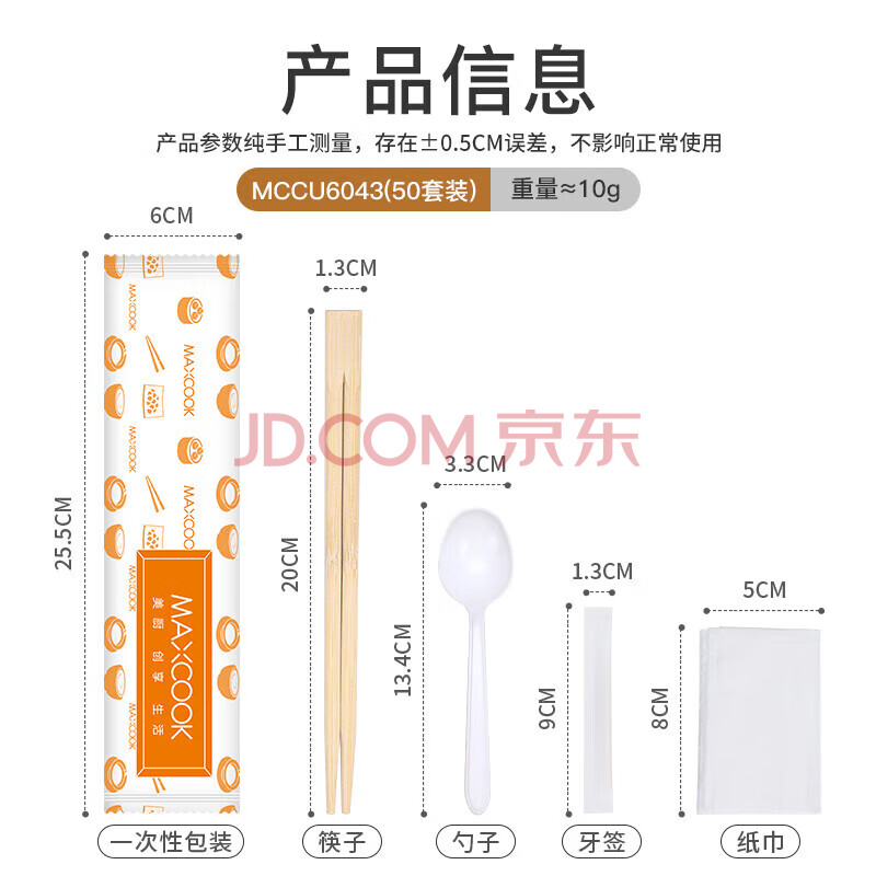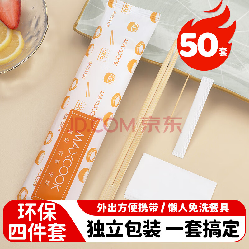 商品相册:美厨(MAXCOOK)一次性筷子勺子餐具套装 50套包装外卖打包餐具 4合1 MCCU6043第