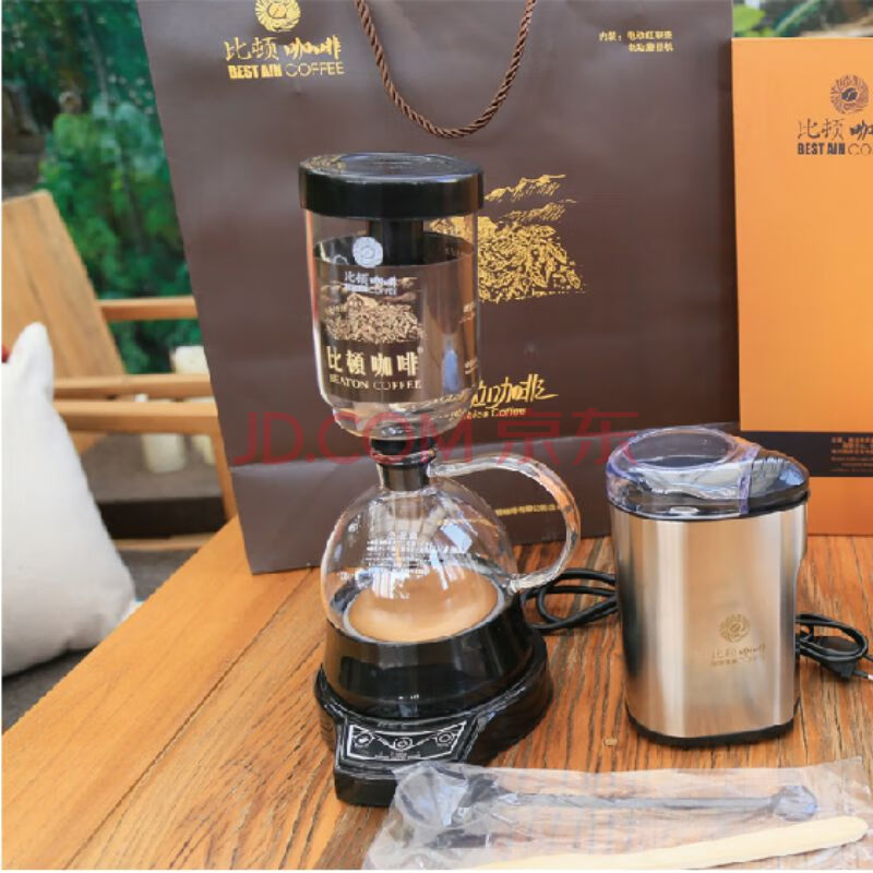 商品相册:比顿 云南保山咖啡 铁皮卡咖啡豆+电虹吸壶+电磨豆机套装 办公必备第