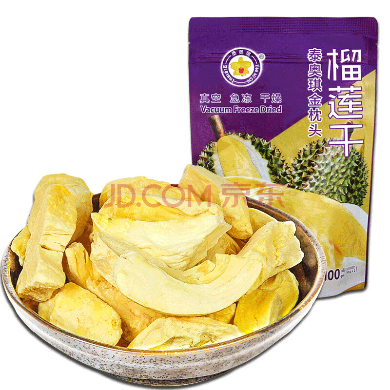 商品相册:泰奥琪 Thai Ao Chi 金枕头榴莲干100g 泰国进口冻干纯水果干无添加零食第