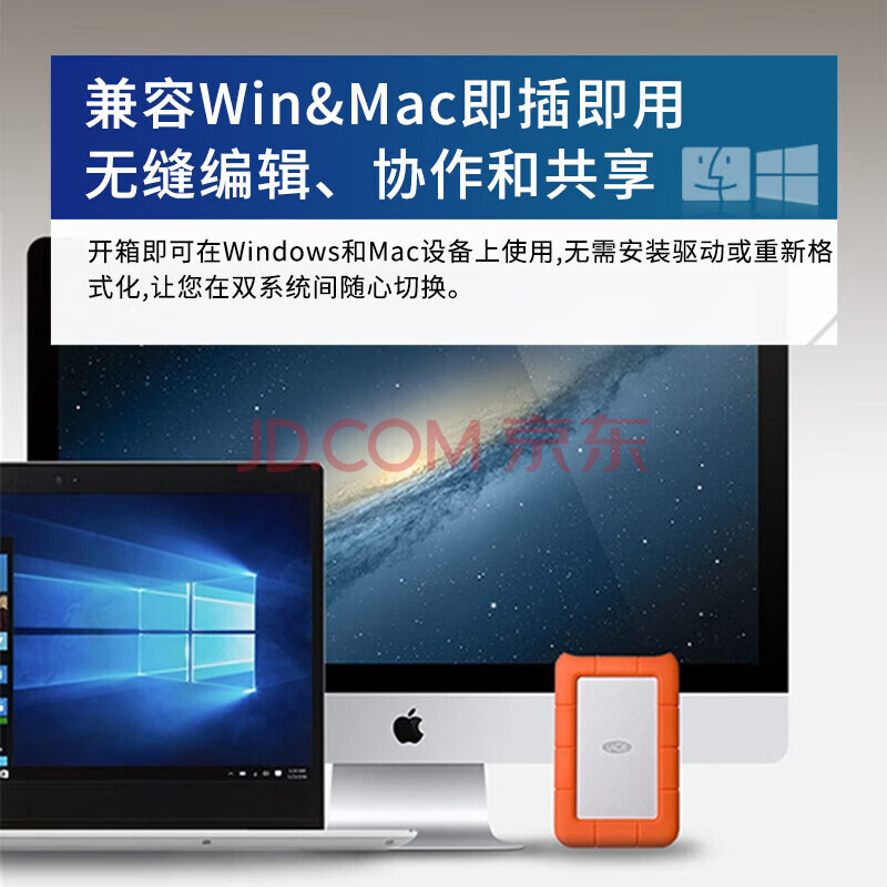 商品相册:LaCie雷孜小金刚 移动硬盘 三防 2TB Rugged Mini 机械硬盘USB Type-C/USB3.2 兼容mac 便携防跌 外接第