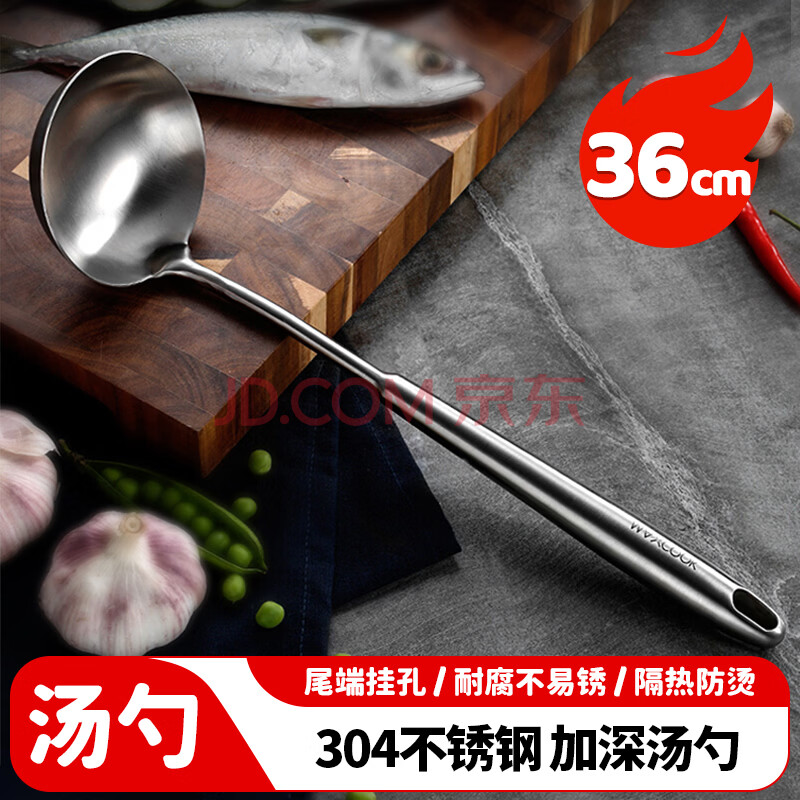 商品相册:美厨(MAXCOOK)汤勺 304不锈钢大汤勺 加厚勺子长柄炒菜勺粥勺MCCU734第