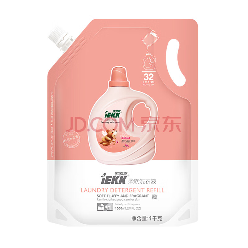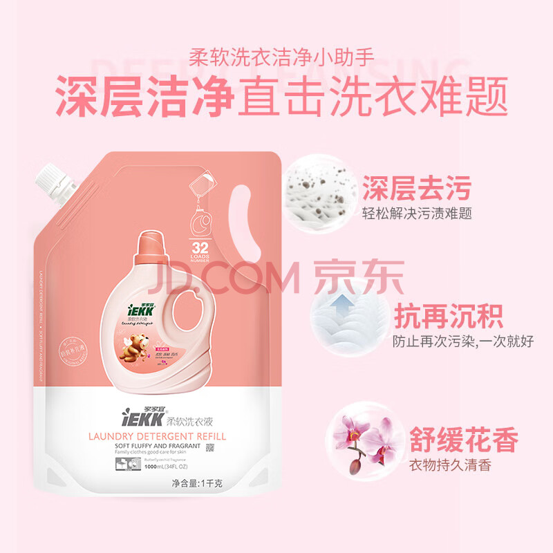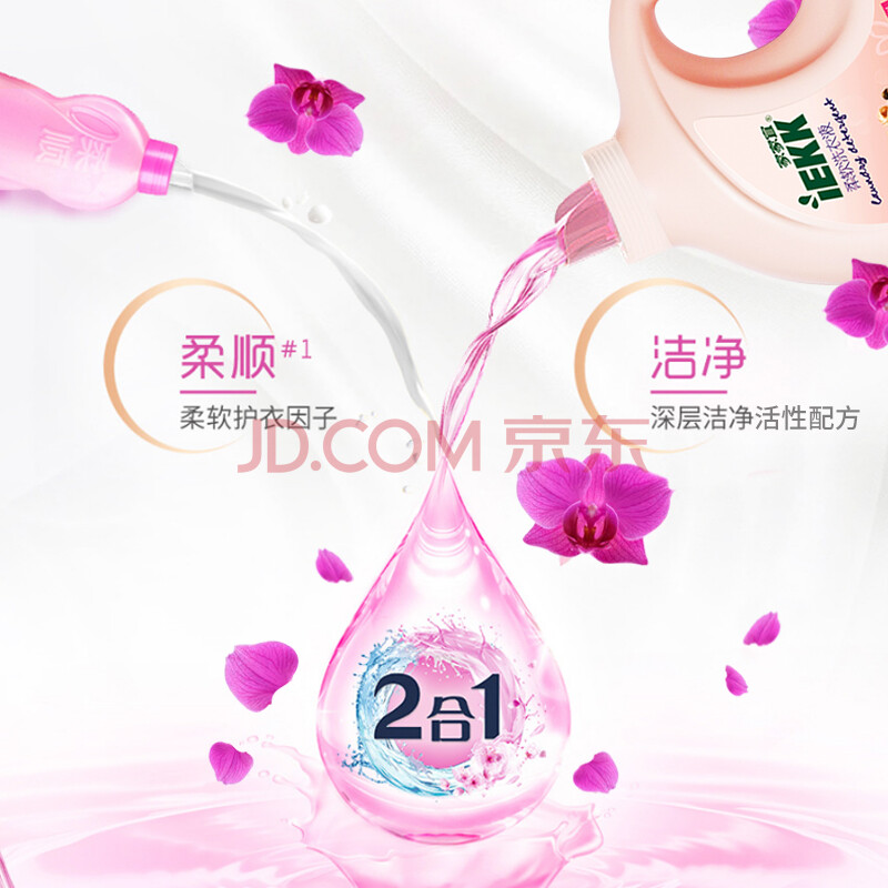 商品相册:家家宜柔软洗衣液蝴蝶兰花2斤*1袋柔顺快洗护色增艳持久留香补充装年货第1张/共8