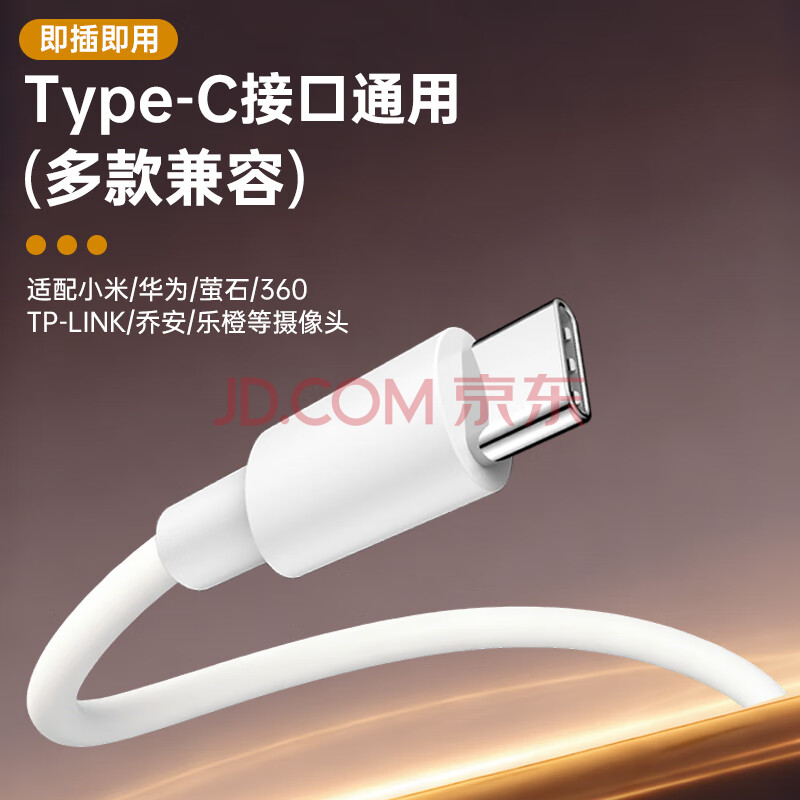商品相册:trendsetter 适用小米2云台版标准2K/室外电池新版监控摄像头机电源延长线3米加长type-c充电线数据线第