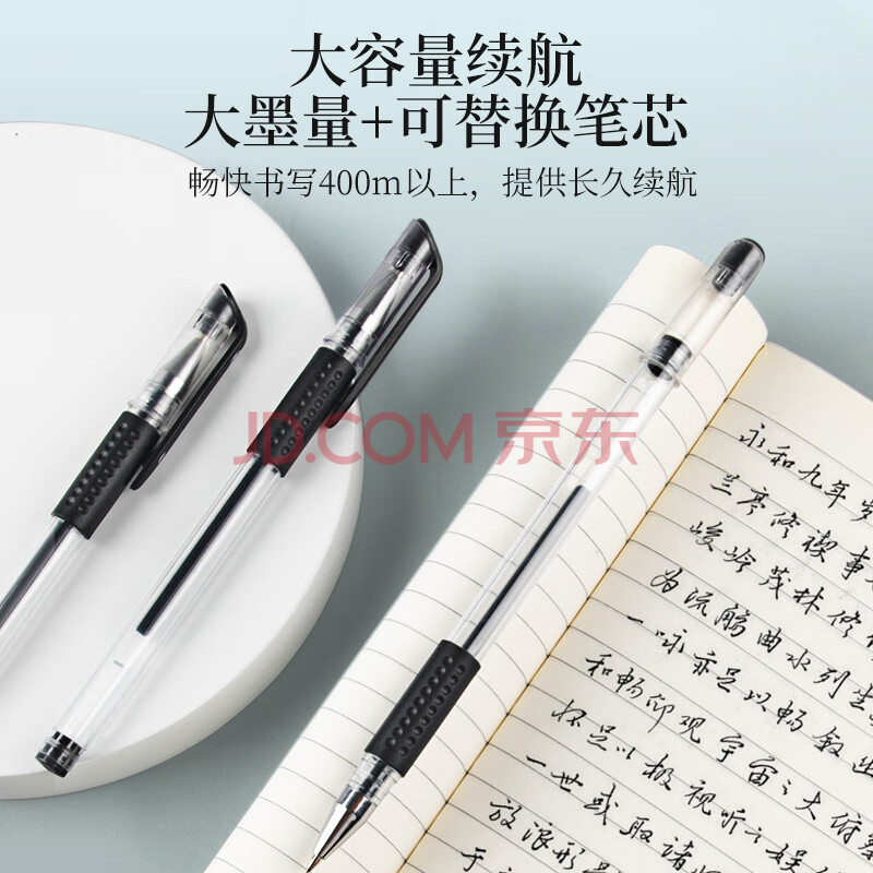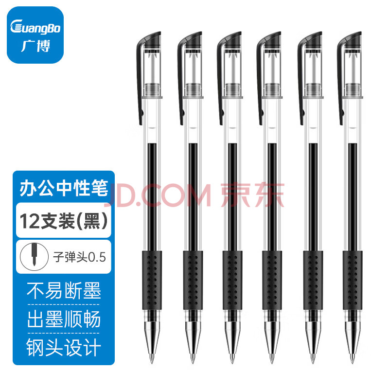 商品相册:广博(GuangBo)中性笔签字笔 0.5mm黑色子弹头水笔 软护手拔帽经典办公商务签字笔文具 12支装ZX9009D第