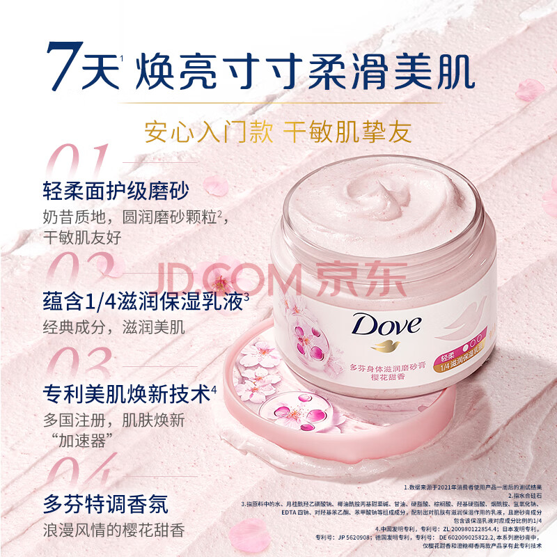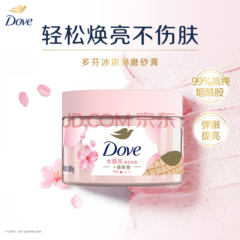 商品相册:多芬冰淇淋身体磨砂膏樱花甜香280g 去角质保湿滋润沐浴露男女洗澡搓泥第