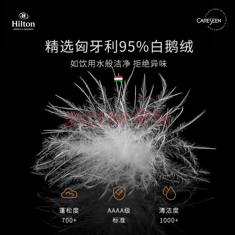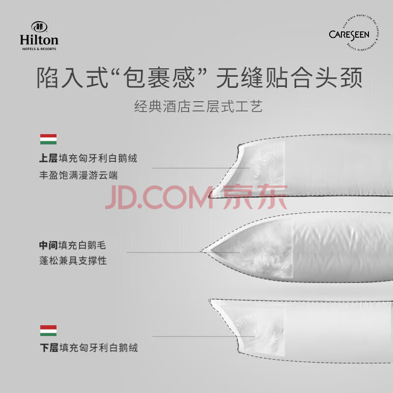 商品相册:康尔馨希尔顿酒店羽绒枕头 95%匈牙利白鹅绒枕芯 单只装 74*48cm中枕第