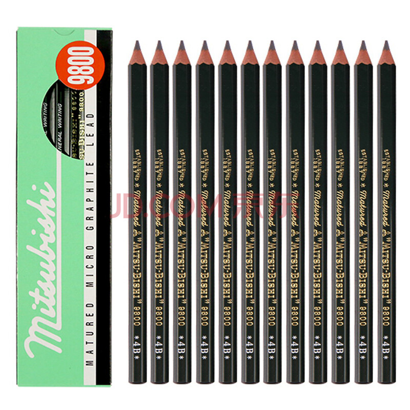 商品相册:uni三菱 uni-ball 9800 4B铅笔儿童美术素描绘画绘图笔办公用品小学生专用文具套装 12支第1张/共8
