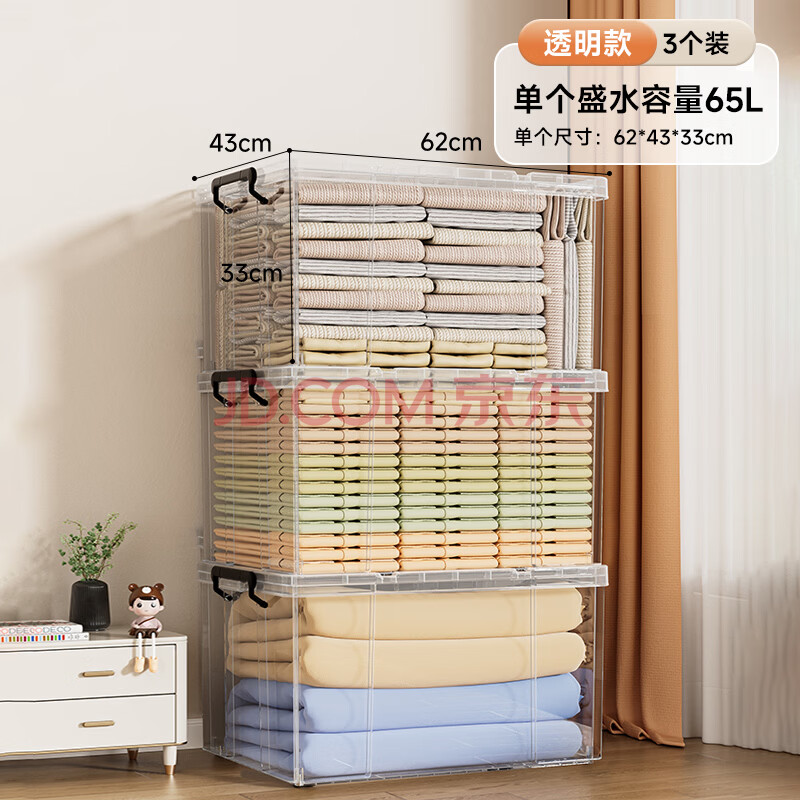 商品相册:JEKO&JEKO特耐斯直角收纳箱透明玩具衣服储物箱整理箱搬家打包箱65L 3只装第