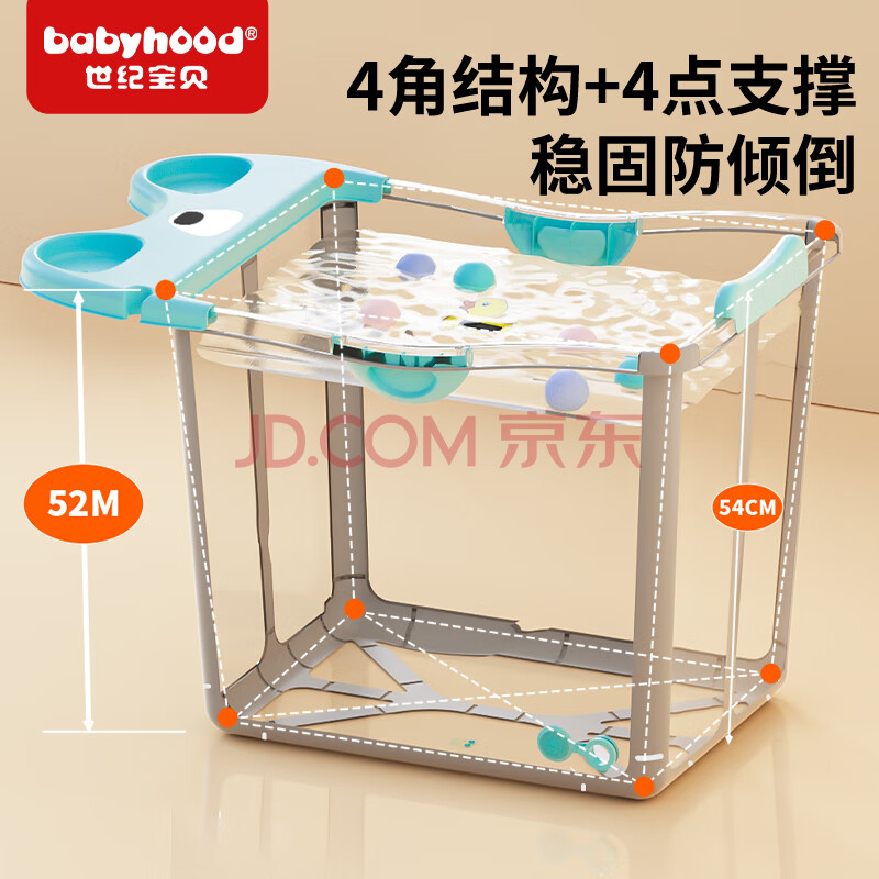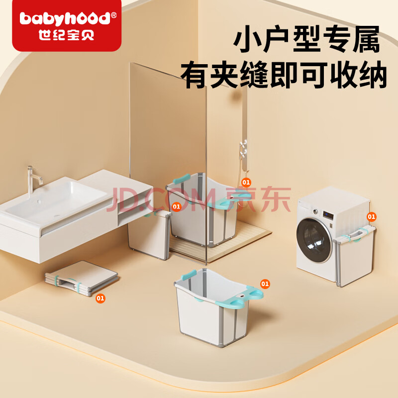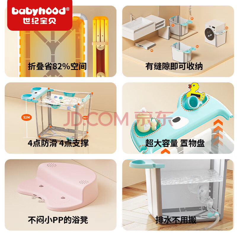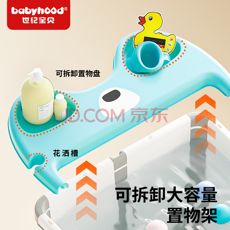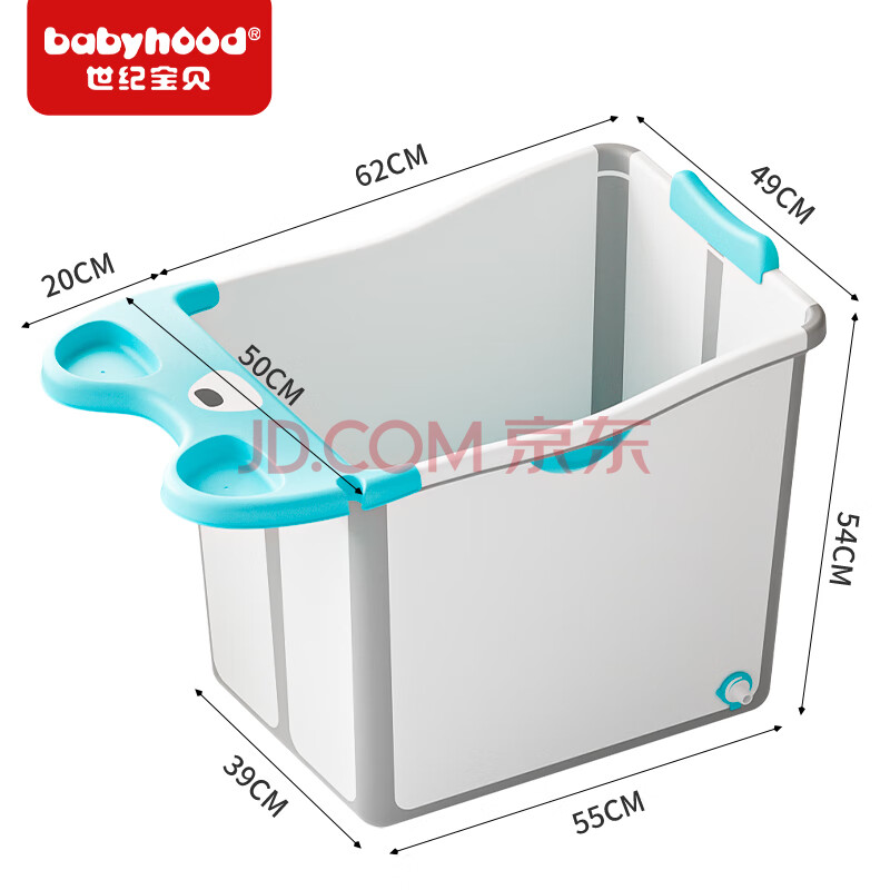 商品相册:世纪宝贝(babyhood)左右折叠儿童浴桶 婴儿洗澡盆 宝宝泡澡桶0-10岁游泳桶 317蓝第