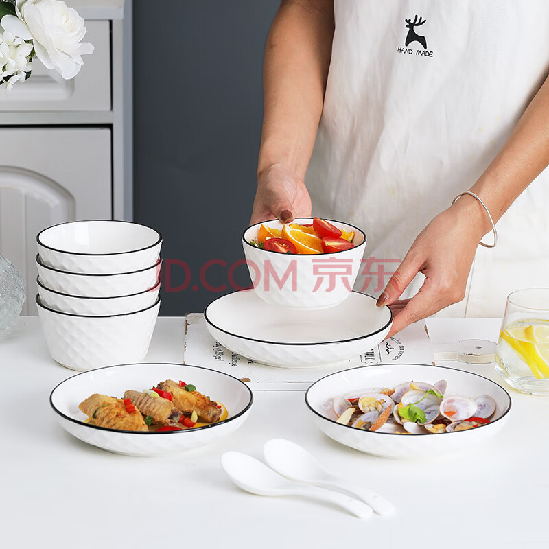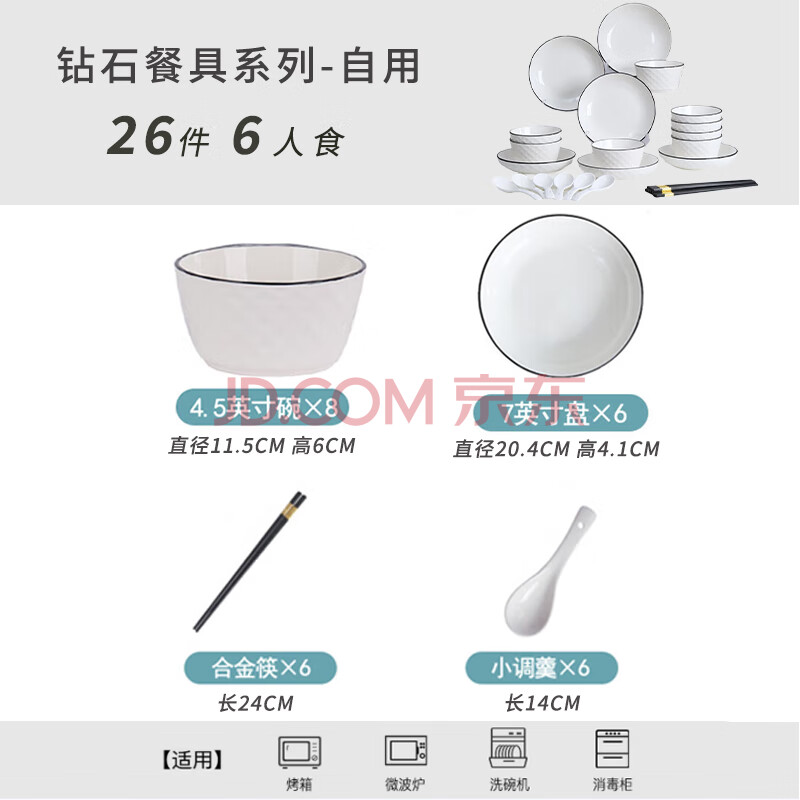 商品相册:唯铭诺(WEIMINGNUO)碗碟套装陶瓷餐具套装日式简约黑线碗盘碟筷家用 26头钻石套装第