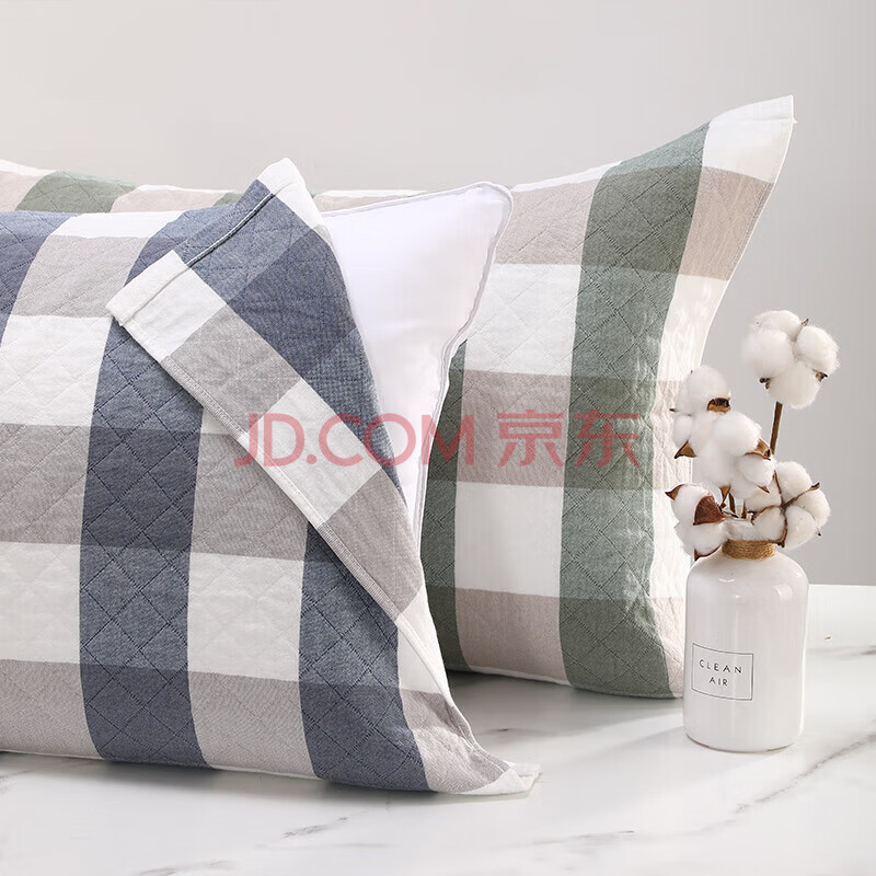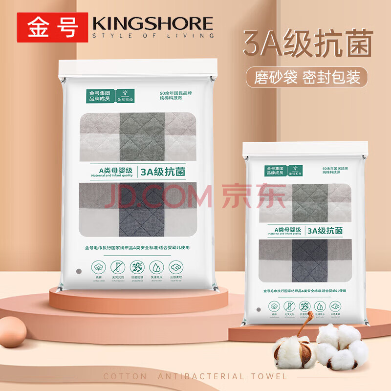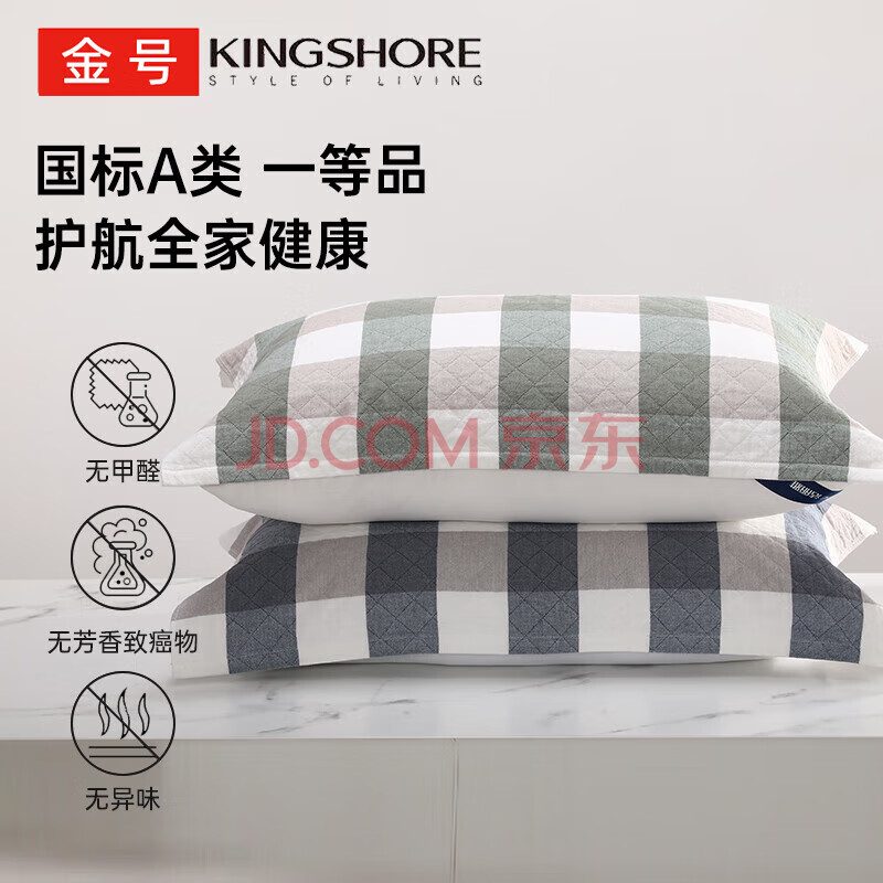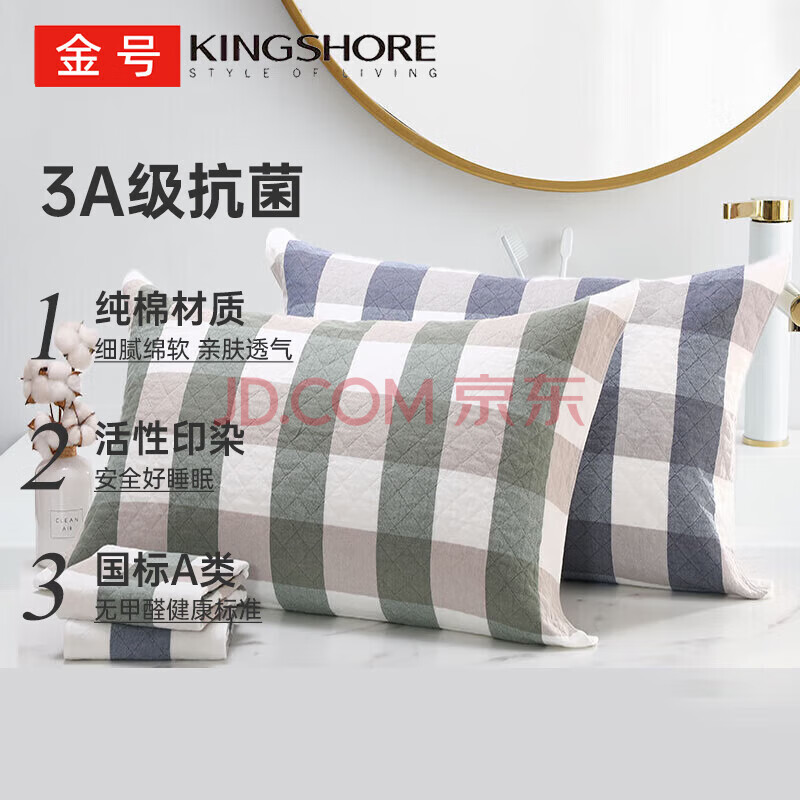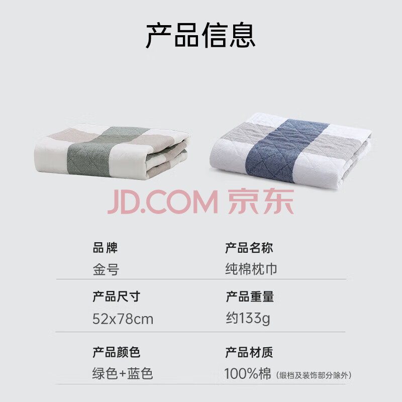 商品相册:金号纯棉枕巾 3A抗菌三层枕头巾双人透气吸汗对枕蓝绿2条装52*78cm第1张/共8