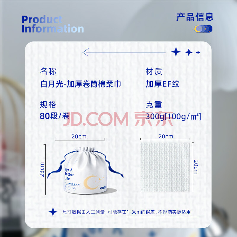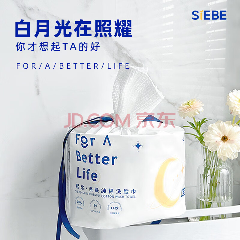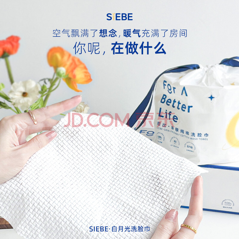 商品相册:熙比白月光洗脸巾女一次性特厚洁面擦脸巾纸卷筒式棉柔巾 80段*3卷第