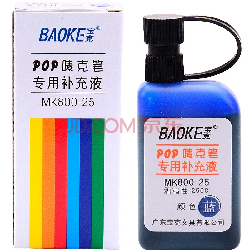 商品相册:宝克(BAOKE)MK800-25 POP 唛克笔专用补充液 蓝色 1瓶装第