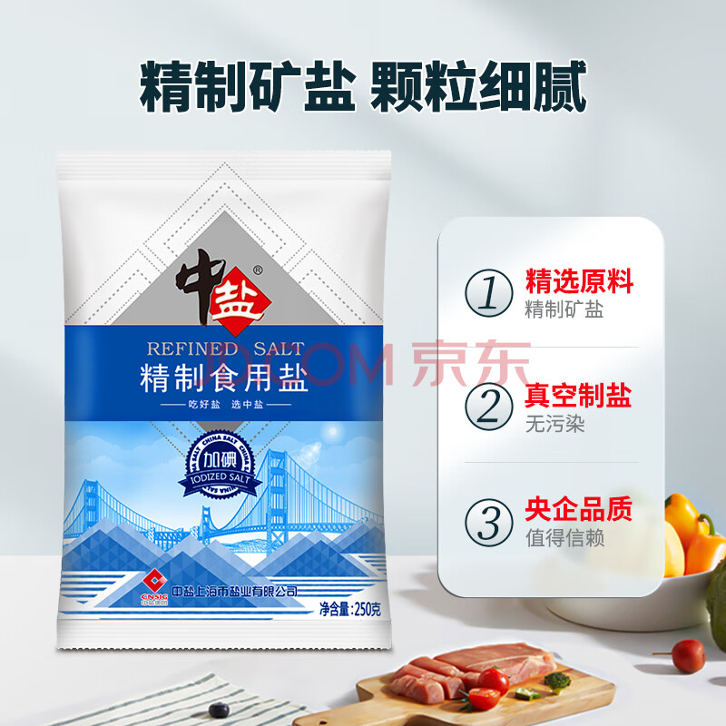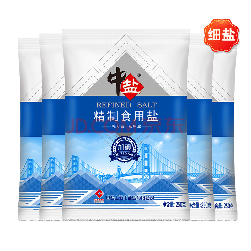 商品相册:中盐 精制食用盐250g*5【加碘 井矿盐】家用细盐 炒菜调味 中盐出品第
