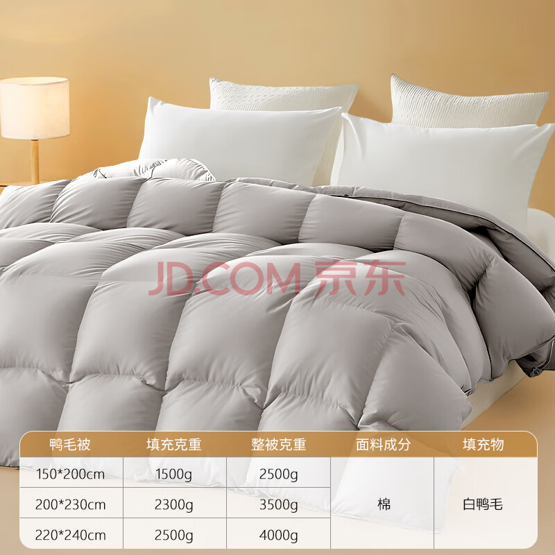 商品相册:源生活防钻绒 白鸭毛羽毛被子被芯 四季单人羽毛被5斤 150*200cm 灰色第