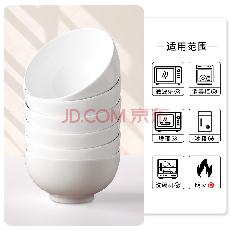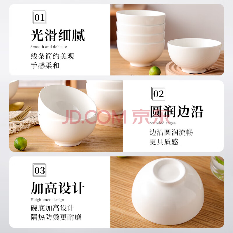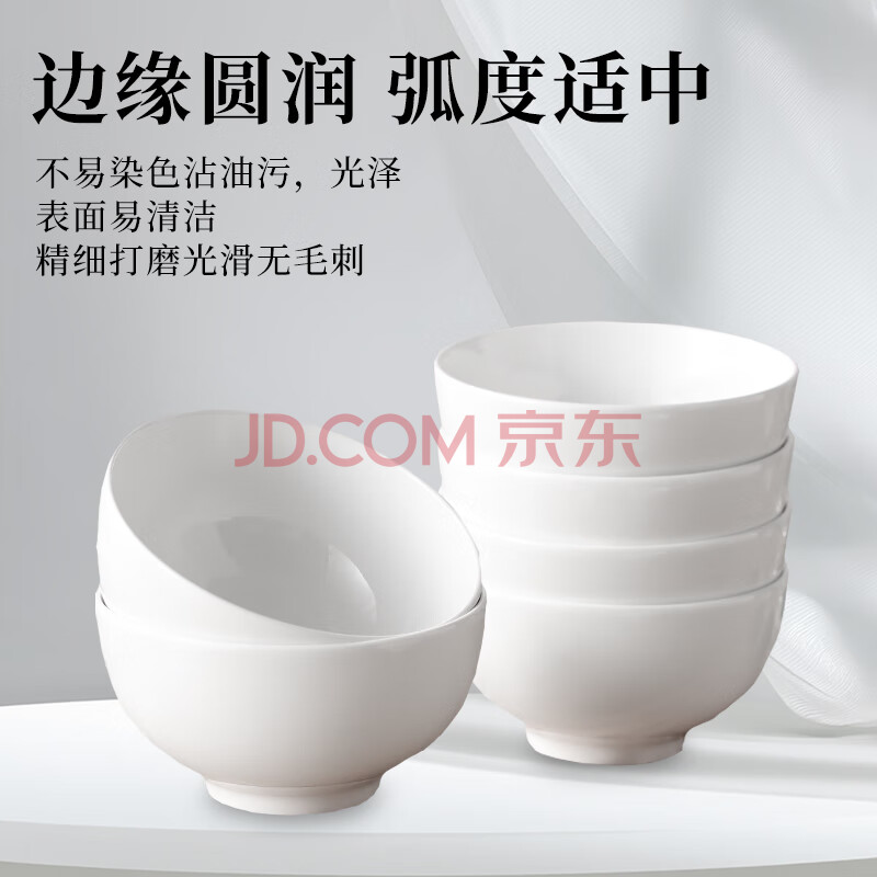 商品相册:洁雅杰陶瓷碗中式白瓷小碗家用4.5英寸米饭碗喝汤碗面碗套装10只装第