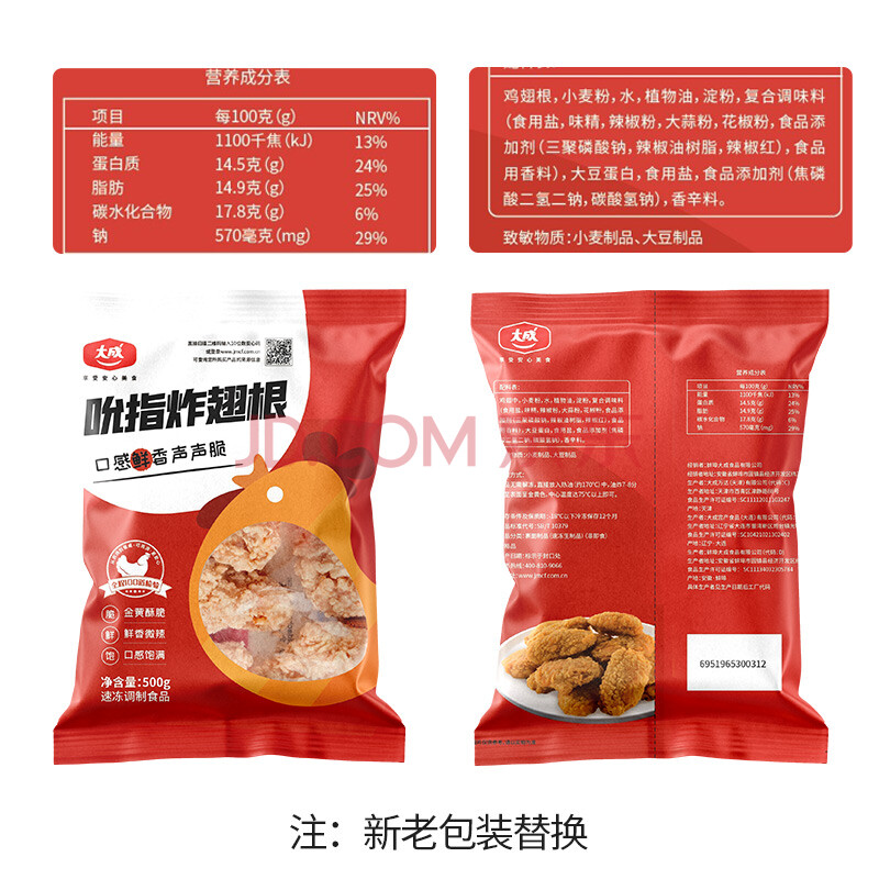 商品相册:大成 吮指炸鸡翅根 1斤 鸡腿烤鸡翅炸鸡翅炸翅根 炸鸡半成品 冷冻第