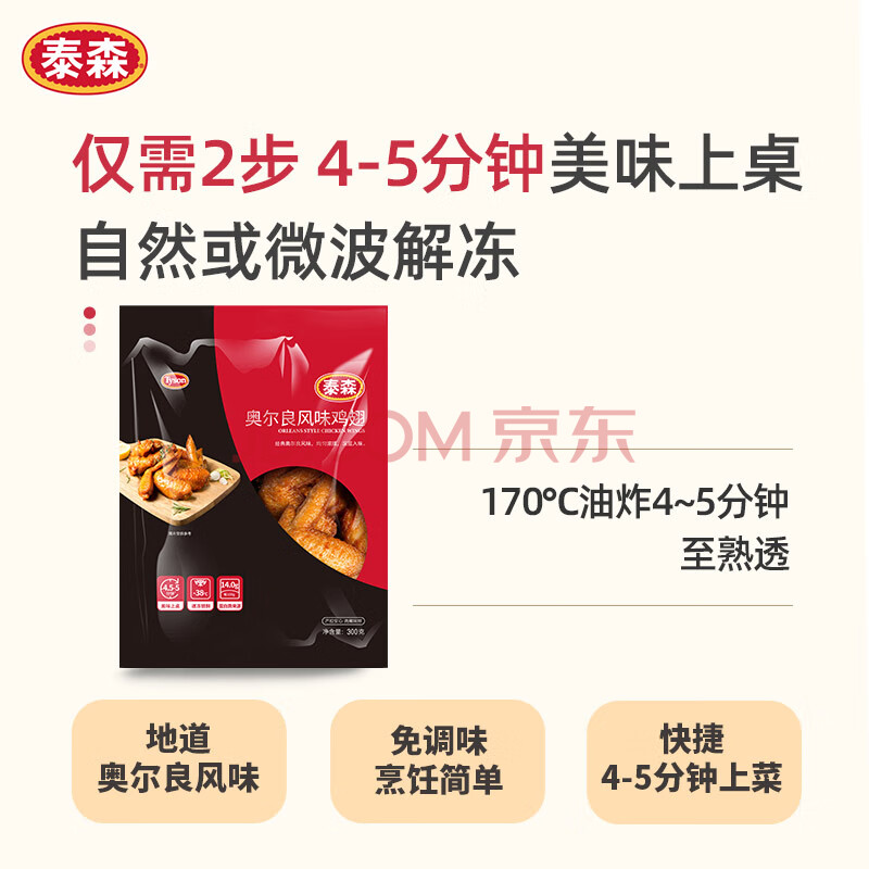 商品相册:泰森(Tyson)奥尔良鸡翅300g 冷冻全翅伴翅含翅中翅根油炸烧烤空气炸锅半成品第