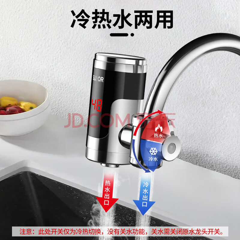 商品相册:苏泊尔(SUPOR) 电热水龙头速热即热式加热厨宝接驳式快速热电热水器卫用阳台冷热两用加热器274247-04-CP赠漏保第
