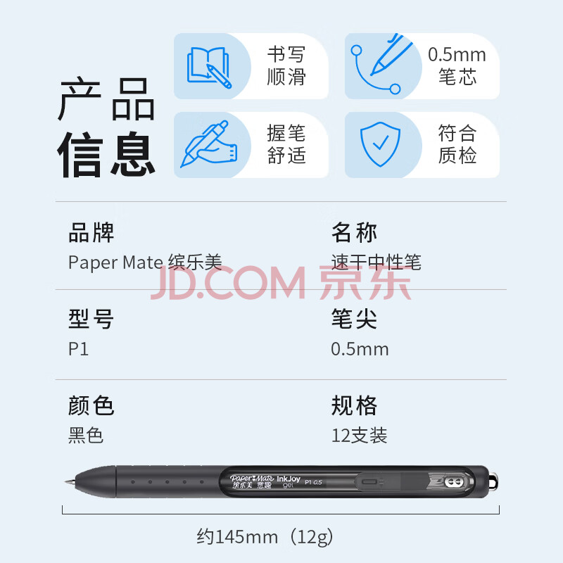 商品相册:缤乐美【开学必备】缤乐美(Paper Mate)中性笔0.5mm高颜值按动式礼物考试学生书写P1系列黑色12支装第