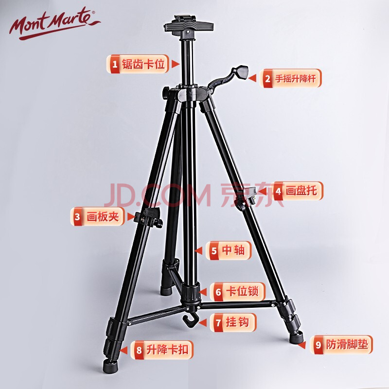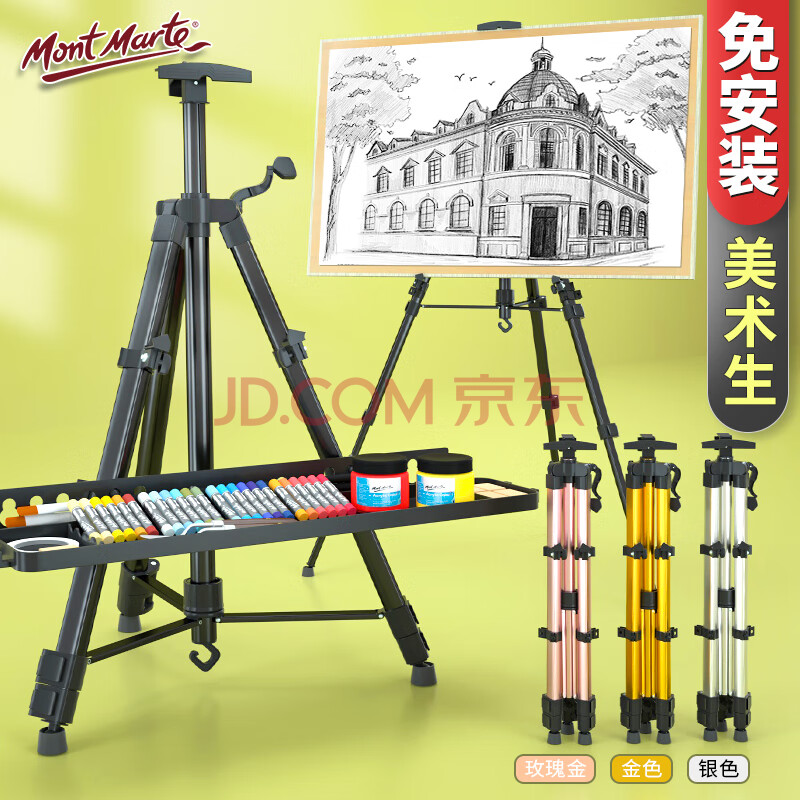 商品相册:蒙玛特(Mont Marte)画架 黑色金属画架伸缩手摇画板架素描美术生写生绘画三角架 可折叠画架子MM-HJ-002 速写 马克笔绘画第1张/共6