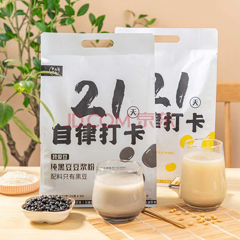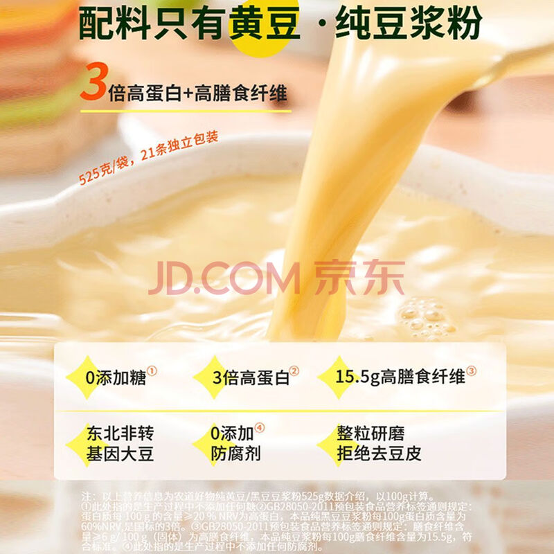 商品相册:农道好物纯黄豆黑豆豆浆粉525g*2袋 纯豆浆粉懒人营养早餐原味无添加蔗糖第