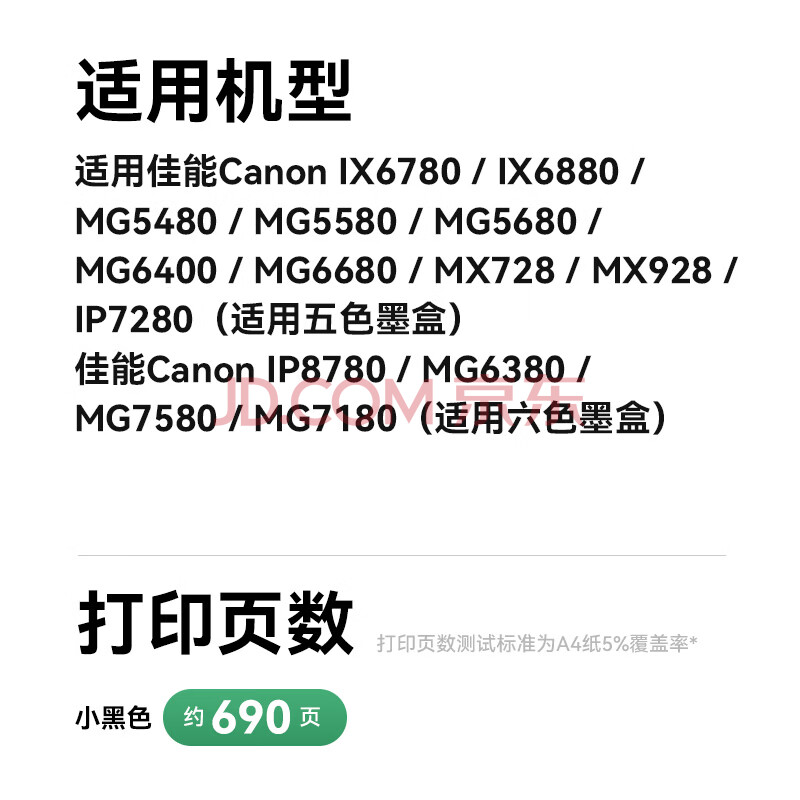 商品相册:彩格CLI-851XL墨盒 适用佳能IX6780 IX6880 IP8780 7280 MG7580 6400 6380 7180 MX928打印机墨水PGI-850 小黑色第1张/共7
