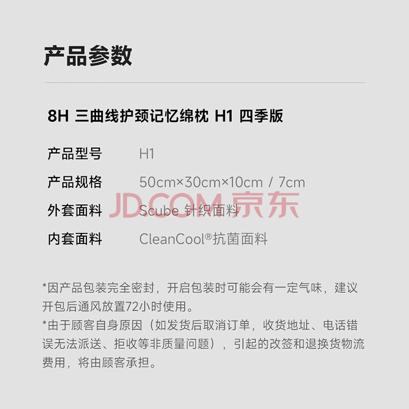 商品相册:8H 慢回弹记忆棉 成人枕头护颈椎枕芯深度睡眠 H1白色对装+枕套第1张/共6