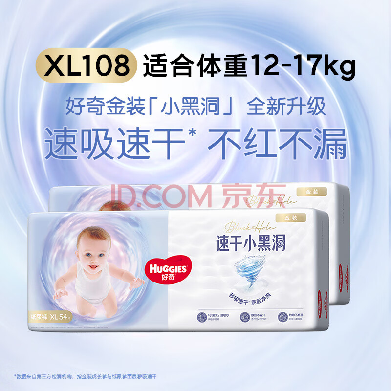 商品相册:好奇(Huggies)金装纸尿裤XL108片(12-17kg)尿不湿【速干不易红】第1张/共6
