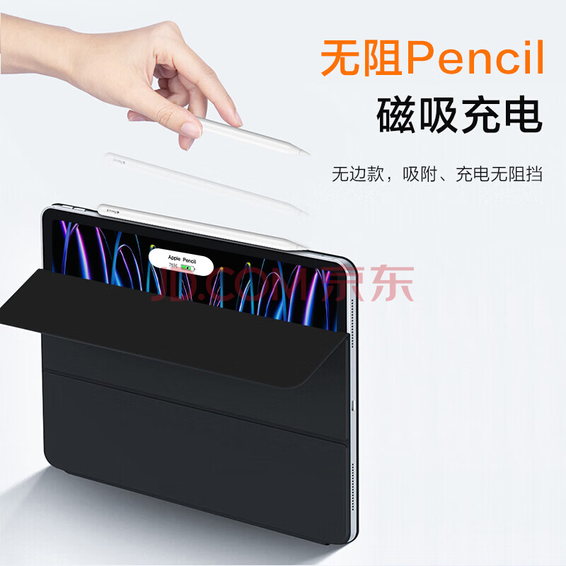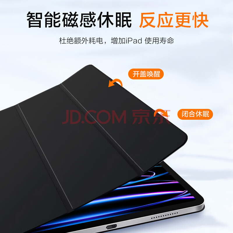 商品相册:京东京造 iPad Pro11英寸保护套2022/2021智能磁吸双面夹保护壳苹果平板电脑2020防摔休眠搭扣款 深邃黑第