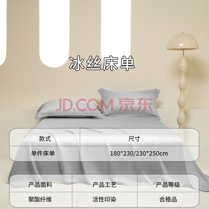 商品相册:艾薇冰丝床单夏季裸睡单人学生宿舍床单单件 冰丝灰 180*230cm第