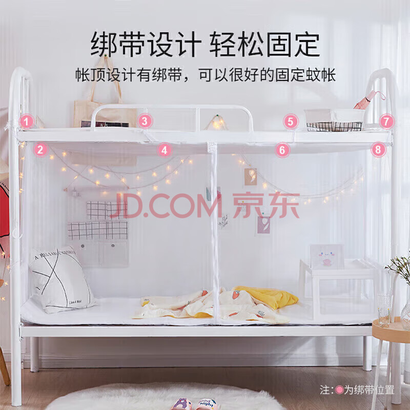 商品相册:雅鹿·自由自在学生蚊帐宿舍 方顶蚊帐 双开门 0.9米床 白色【上下铺通用】第