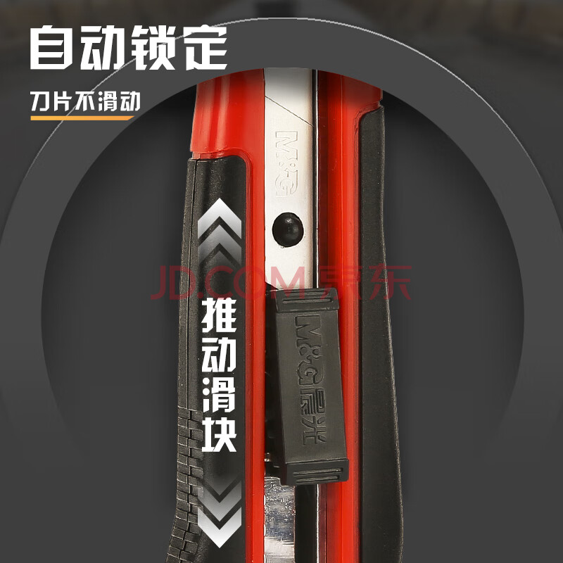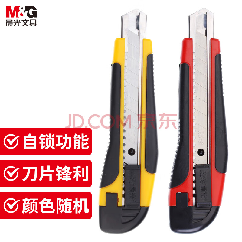 商品相册:晨光(M&G)18mm大号美工刀 自锁壁纸刀 多功能裁纸刀(含备用刀1片) 办公用品 单个装颜色随机ASS91315第
