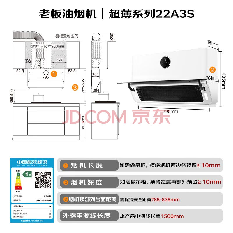 商品相册:老板超薄近吸变频23风量22A3S小尺寸白色抽吸排油烟机家用大吸力上门安装第