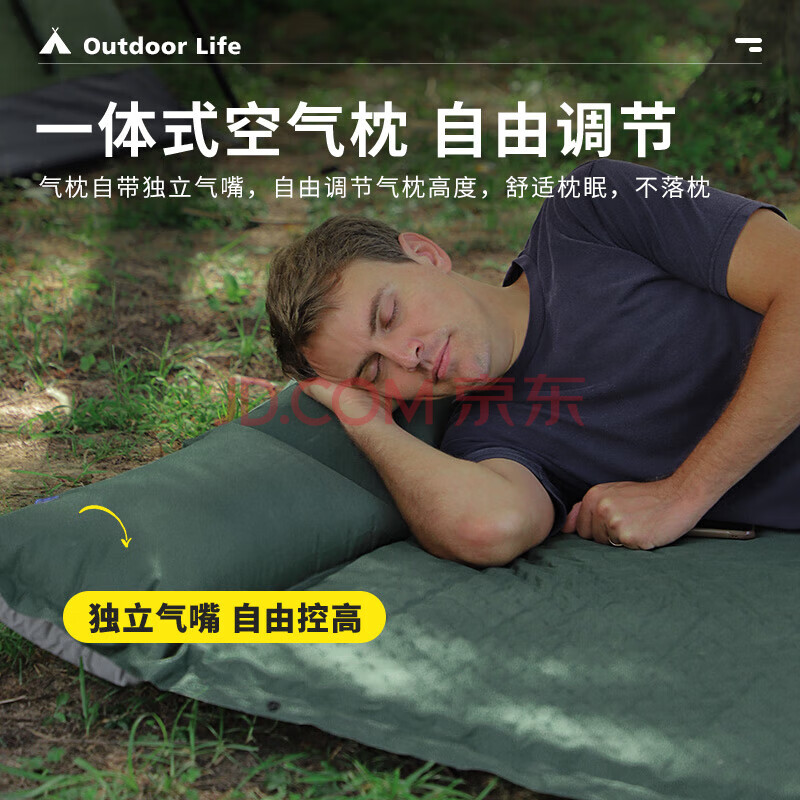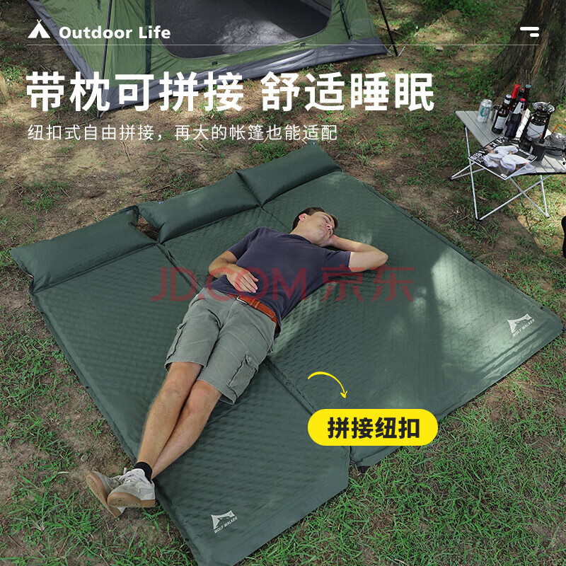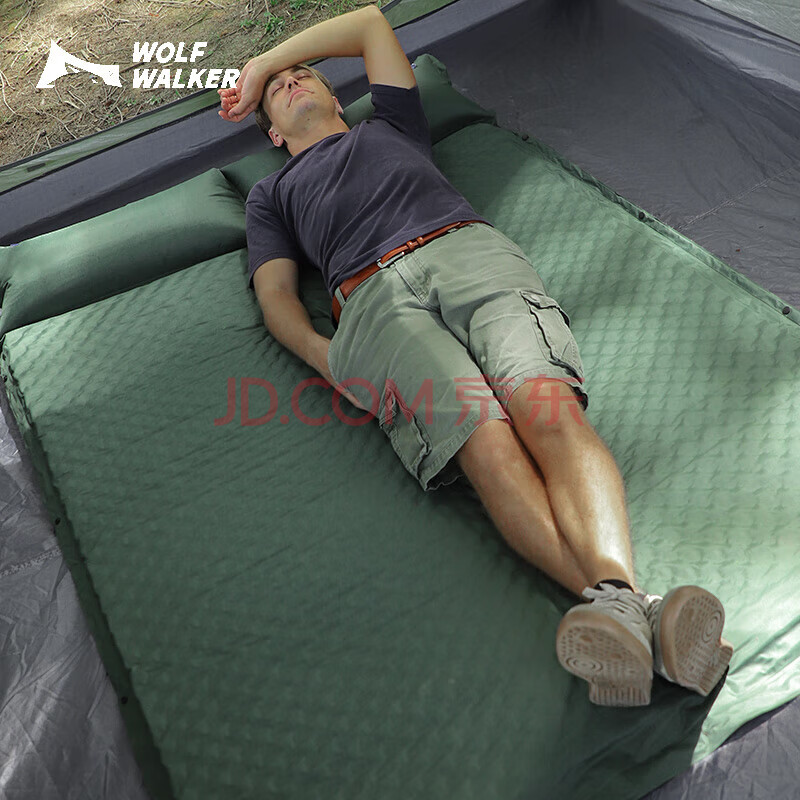 商品相册:狼行者自动充气床垫双人气垫床户外露营地垫野外防潮垫帐篷睡垫 墨绿色第
