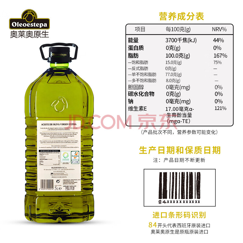 商品相册:奥莱奥原生【保真橄榄油】PDO特级初榨橄榄油5L西班牙原瓶原装进口第