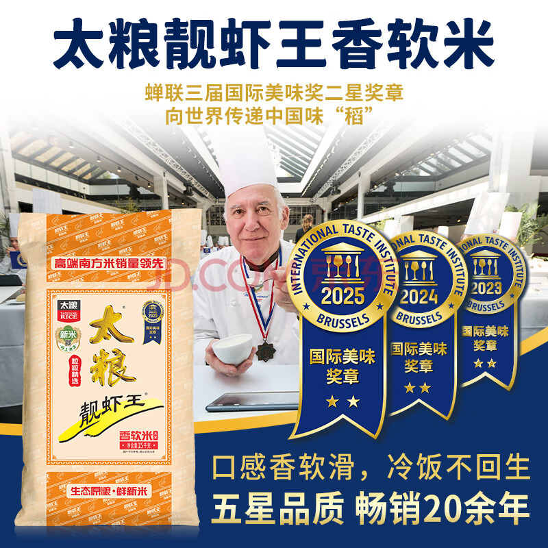 商品相册:太粮靓虾王香软米30斤 油粘米籼米 长粒猫牙米 当季新米 自营第
