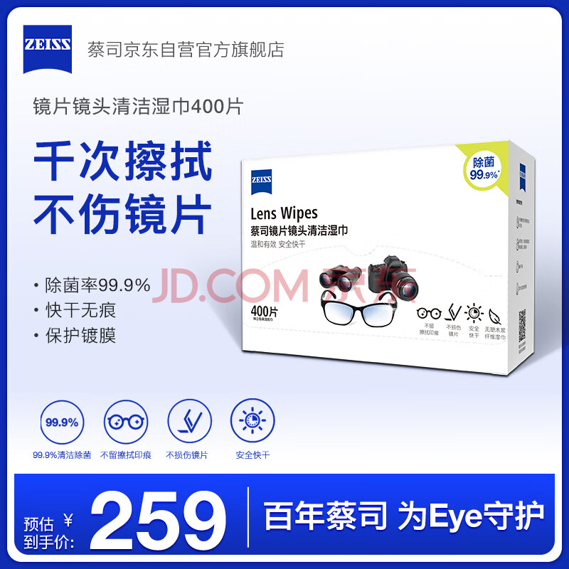 商品相册:蔡司擦镜纸 相机眼镜镜头擦镜纸清洁湿巾 400片装第