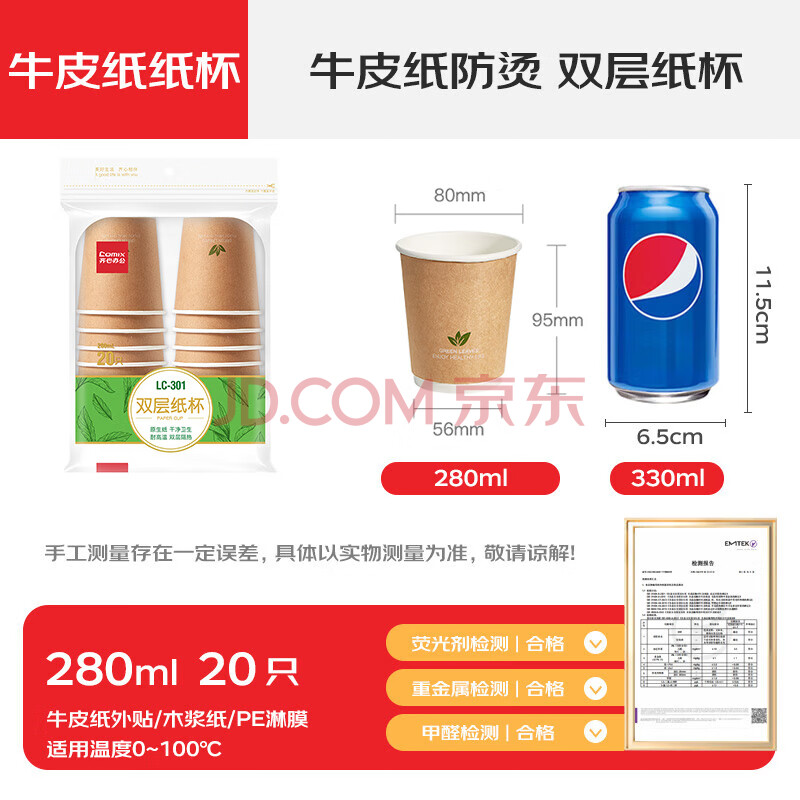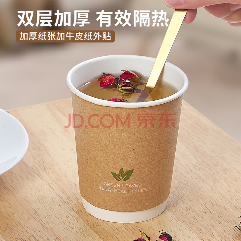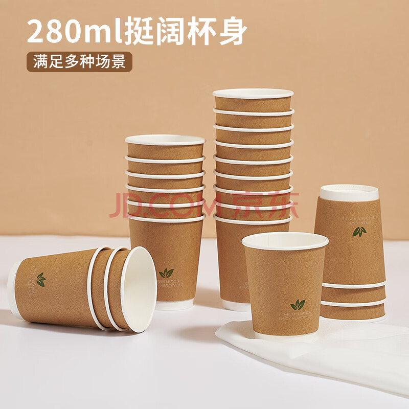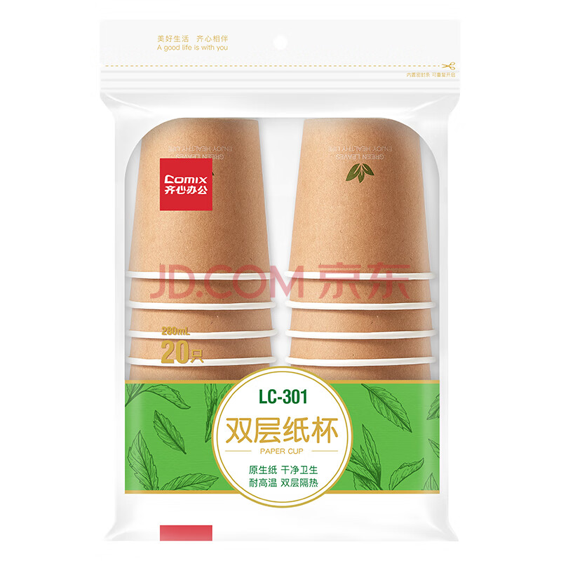 商品相册:齐心(COMIX)280ml一次性杯子 纸杯/水杯 牛皮纸外层 双层加厚 20个装 LC-301第