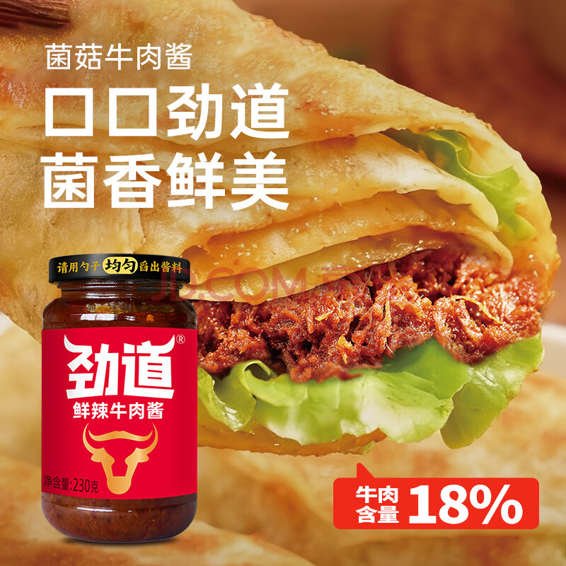 商品相册:仲景 劲道鲜辣牛肉酱230g 招牌拌饭拌面夹馍下饭调味酱料第1张/共4