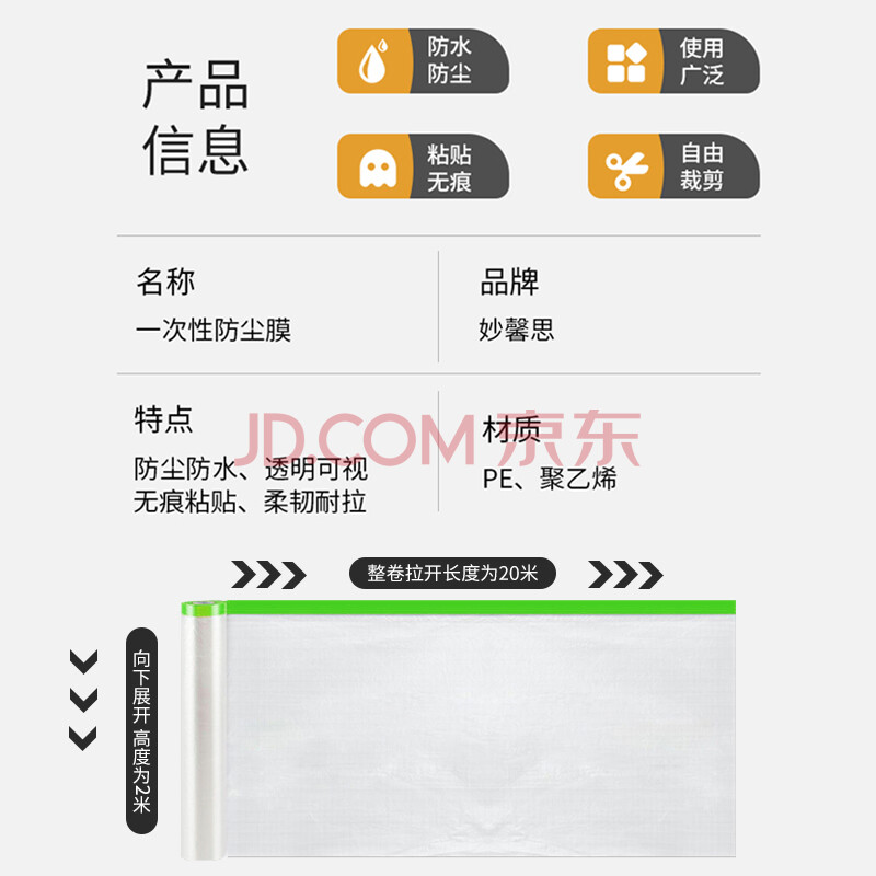 商品相册:妙馨思一次性防尘布防尘膜塑料薄膜装修家具保护膜沙发遮尘灰盖布床垫罩第