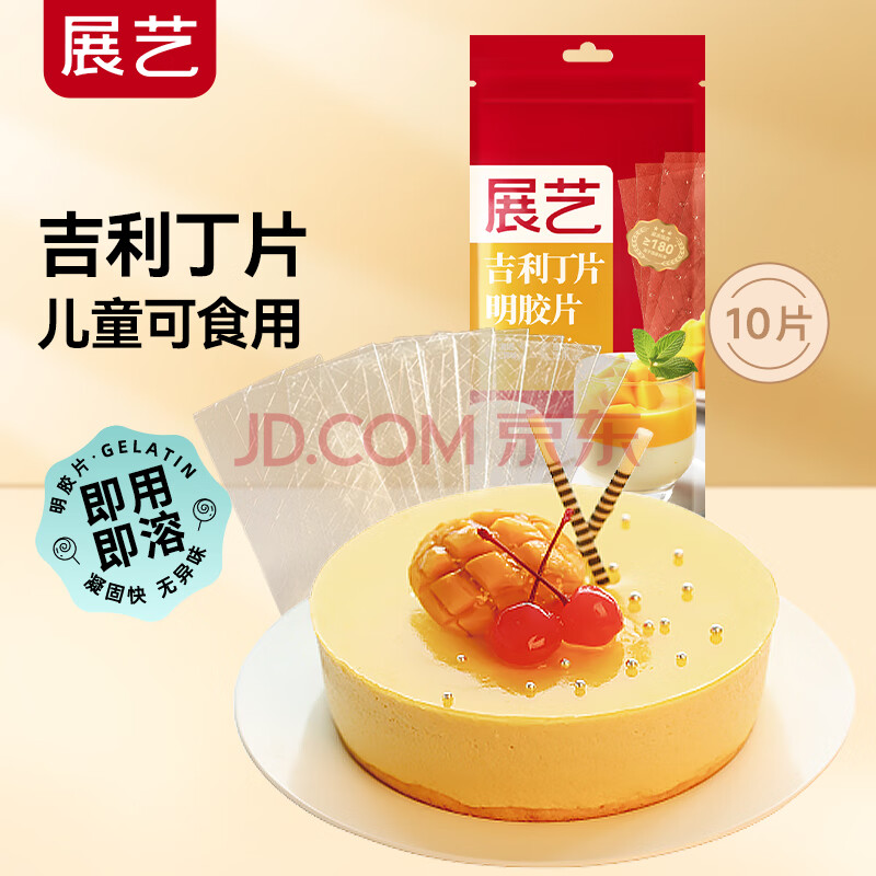 商品相册:展艺吉利丁片50g 食用明胶慕斯果冻布丁婴儿童奶酪棒烘焙原料 5g*10片第