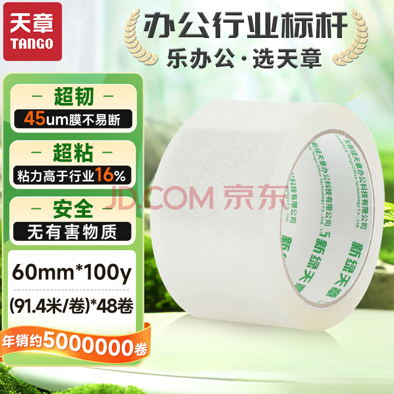 商品相册:天章 (TANGO)高透明胶带60mm*100y(91.4米)*45um48卷/箱高透高粘宽胶带快递工厂物流车间快递打包企业办公用品第