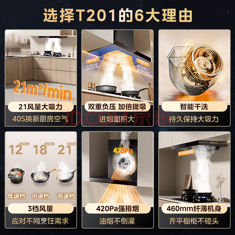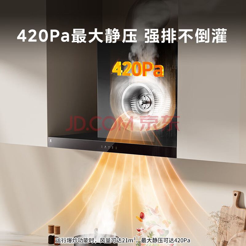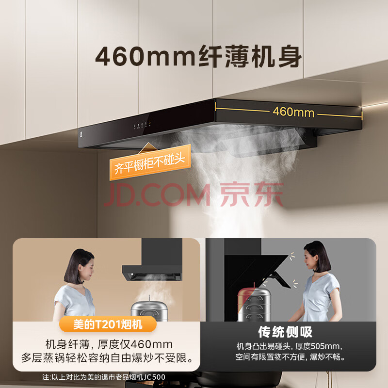 商品相册:美的(Midea)抽吸排油烟机欧式顶吸式家用自清洁抽烟机脱排油烟机CXW-268-T201可配燃气灶第