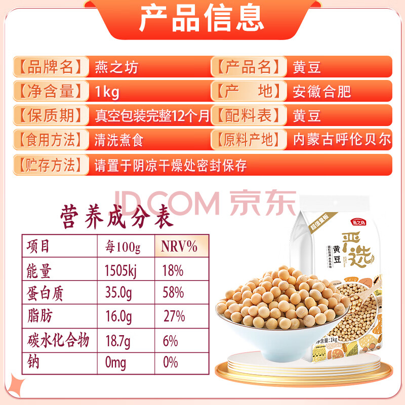 商品相册:燕之坊黄豆 2斤可发豆芽打豆浆东北大豆五谷杂粮第1张/共7