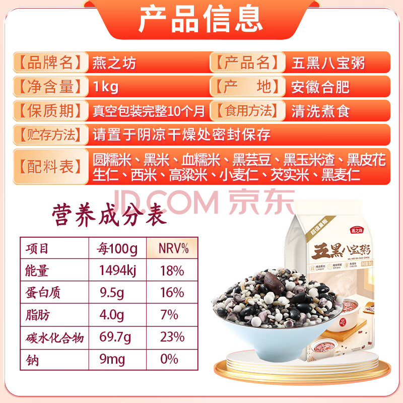 商品相册:燕之坊五黑八宝粥2斤11种谷物 黑米 芡实米 血糯 腊八粥米原料第1张/共8
