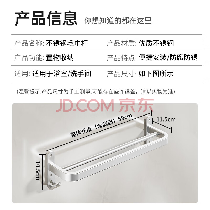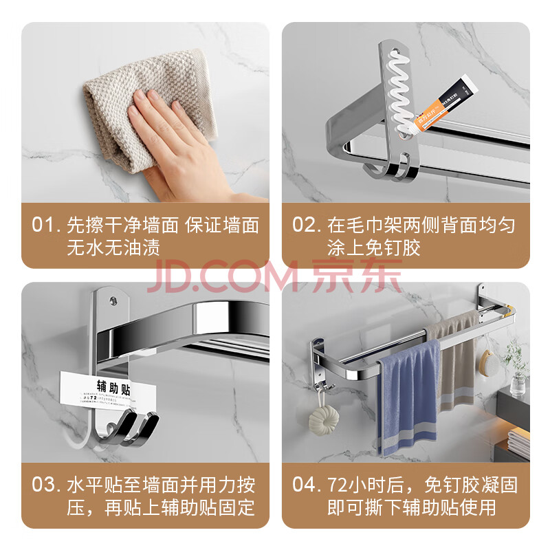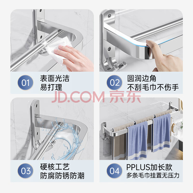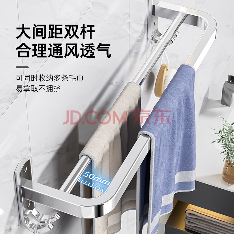 商品相册:百字毛巾架太空铝浴巾架免打孔壁挂毛巾挂杆加粗双杆拖鞋架子第